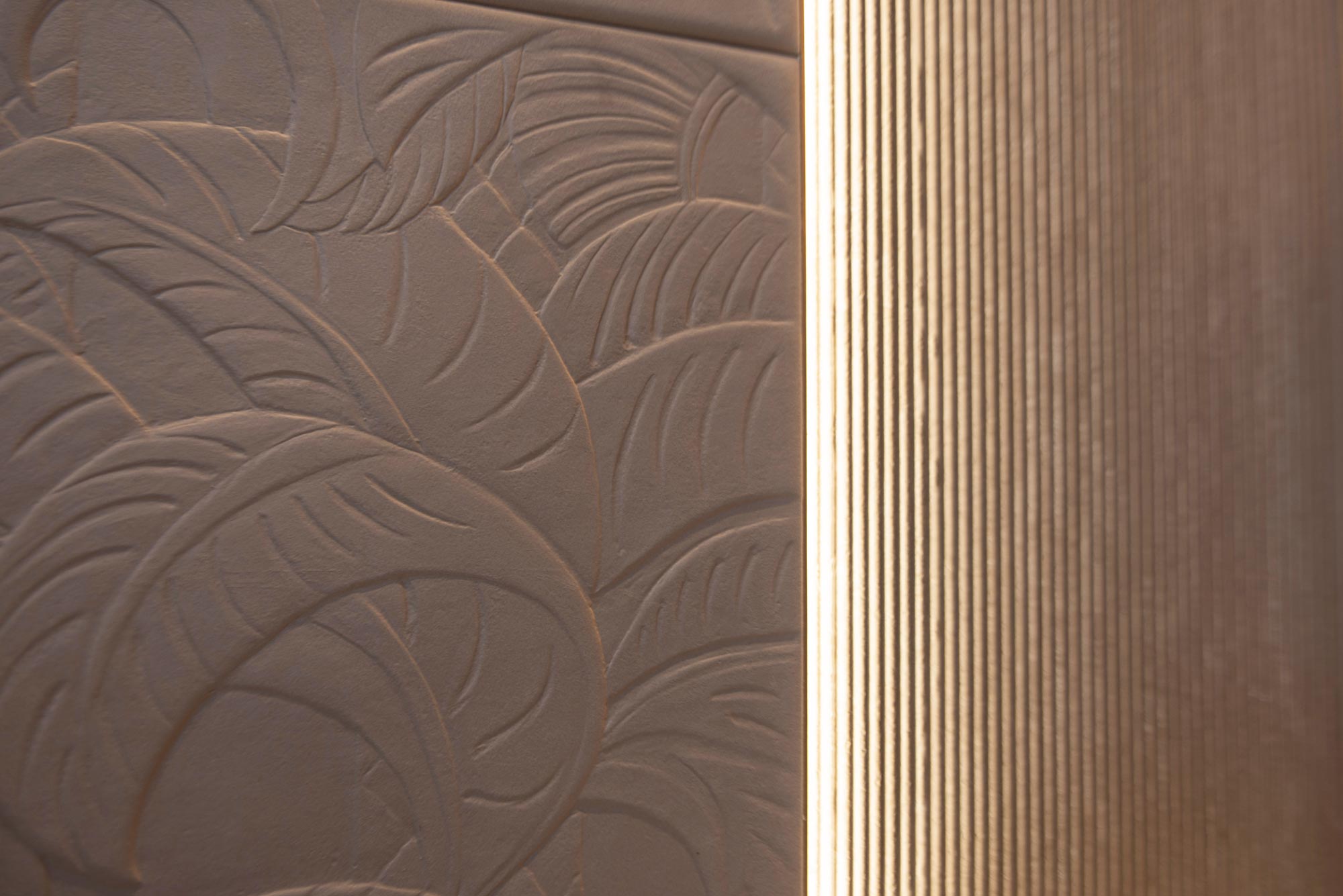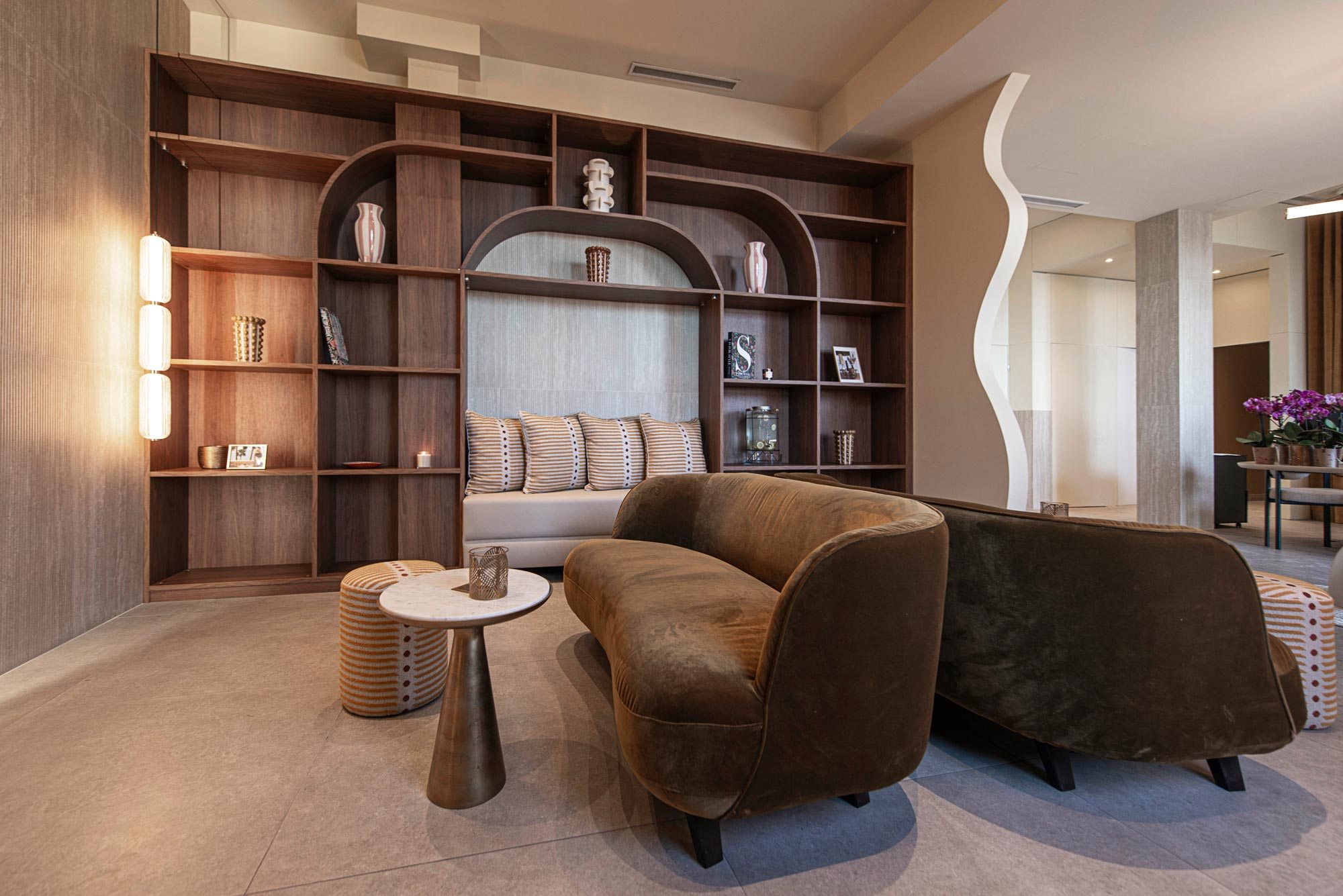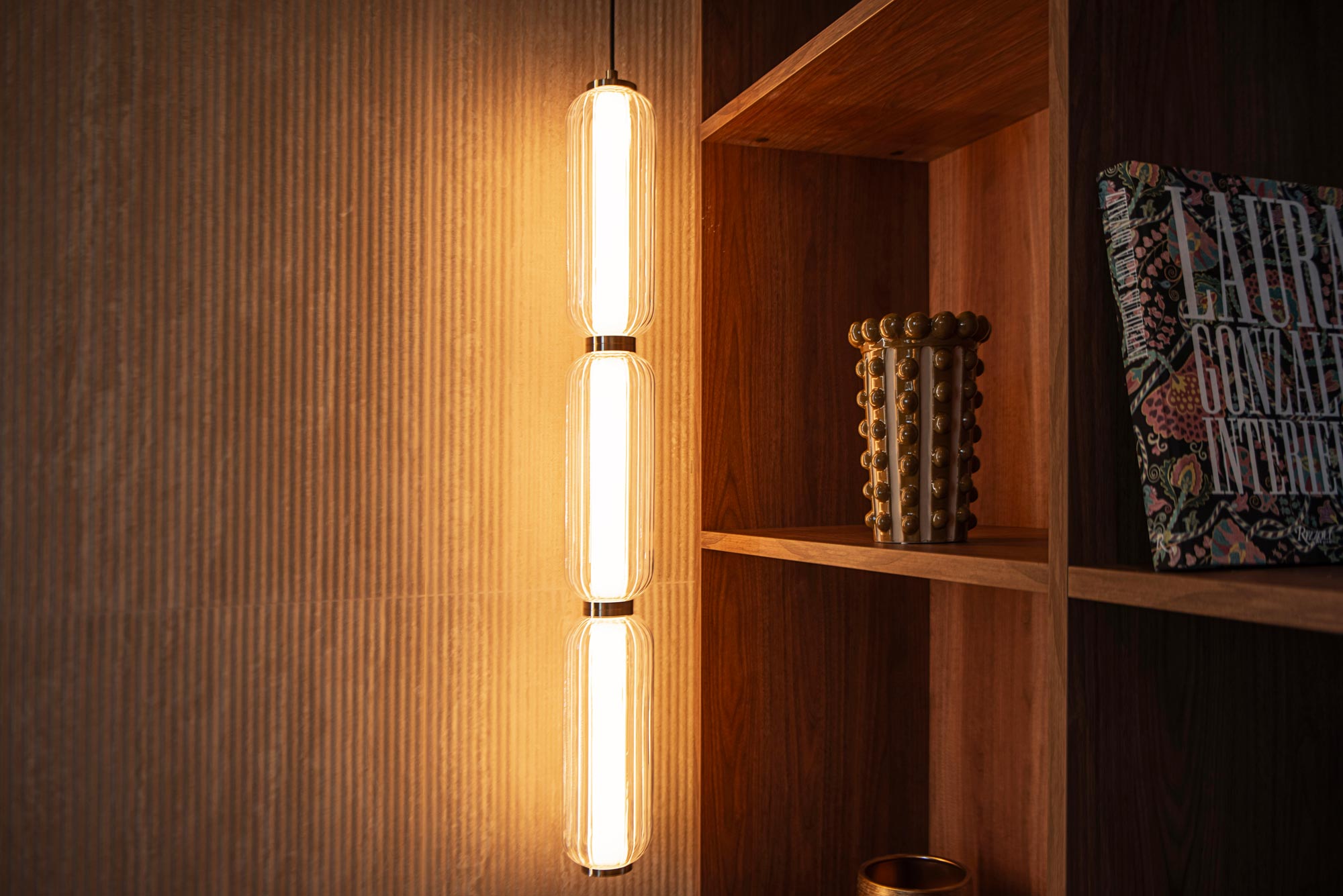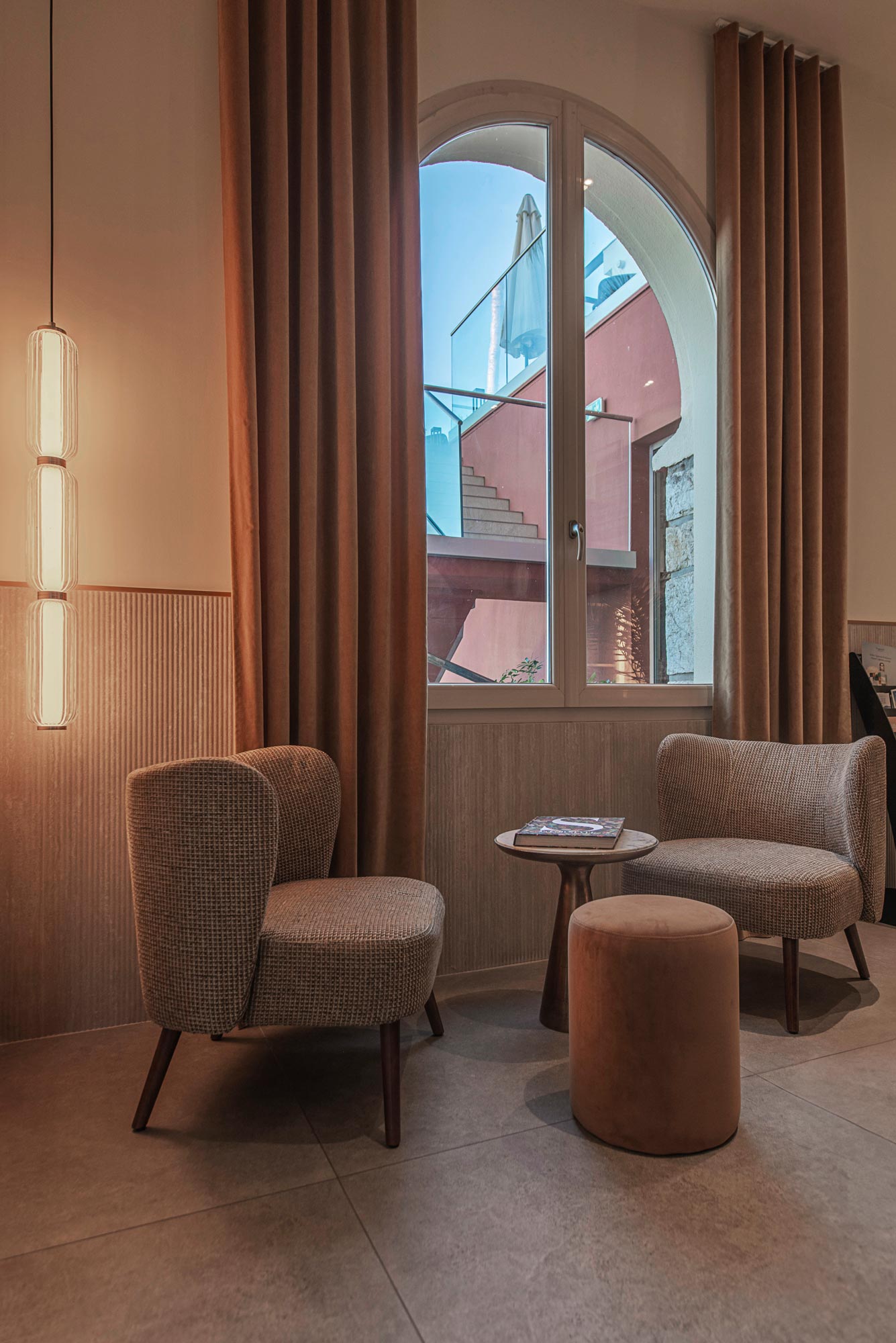 Elles dialoguent avec les boiseries, les arches rétro éclairées et les assises enveloppantes, dessinées spécialement pour le lieu.