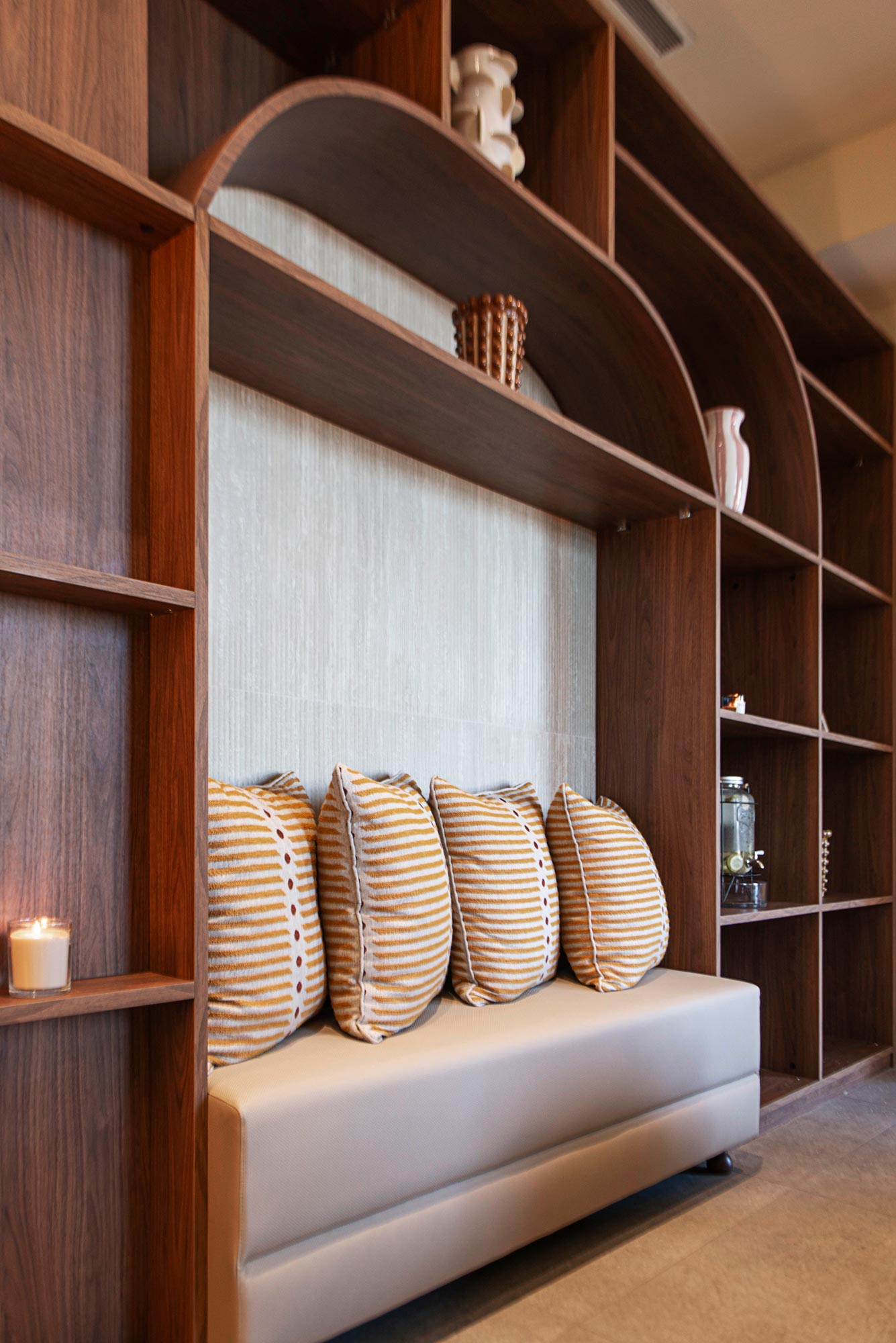 Un projet pensé sur-mesure : de la menuiserie jusqu’aux assises et coussins, véritables touches couture de l’espace.