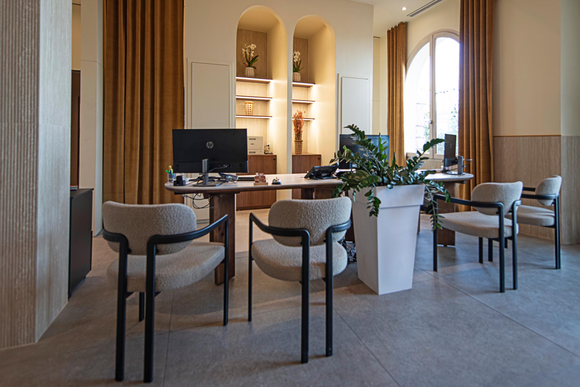 Pour repenser la réception de l’hôtel Royalmar, nous avons imaginé un espace tout en douceur qui dialogue avec l’esprit de la Méditerranée.